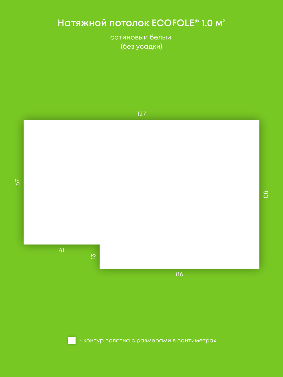 Натяжной потолок белый сатиновый, изготовленный по индивидуальным размерам покупателя, для помещения площадью 1 м2