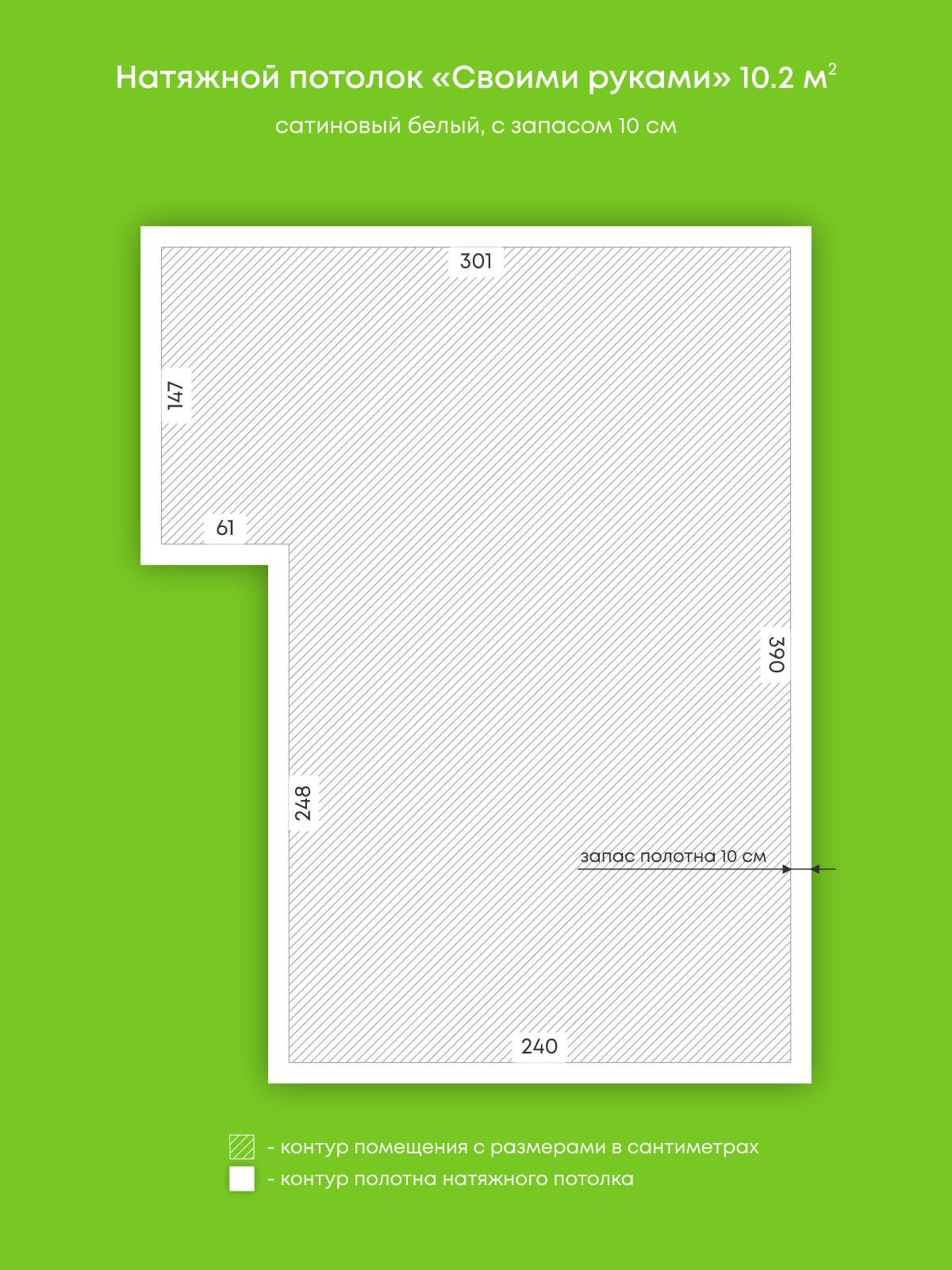 Натяжной потолок белый сатиновый, изготовленный по индивидуальным размерам покупателя, для спальни площадью 10.2 м2