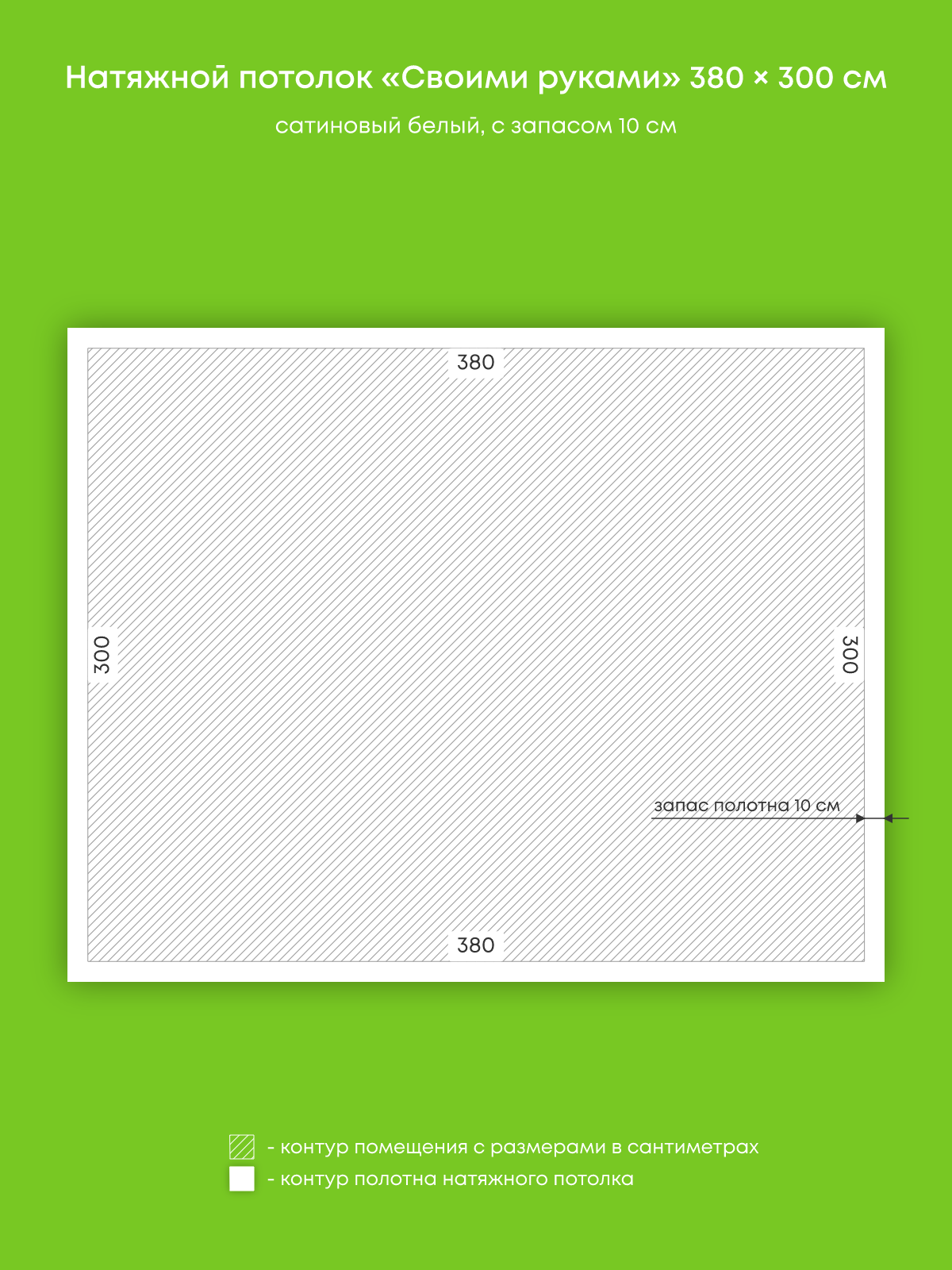 Натяжной потолок белый сатиновый, изготовленный по индивидуальным размерам покупателя, для комнаты площадью 11.4 м2