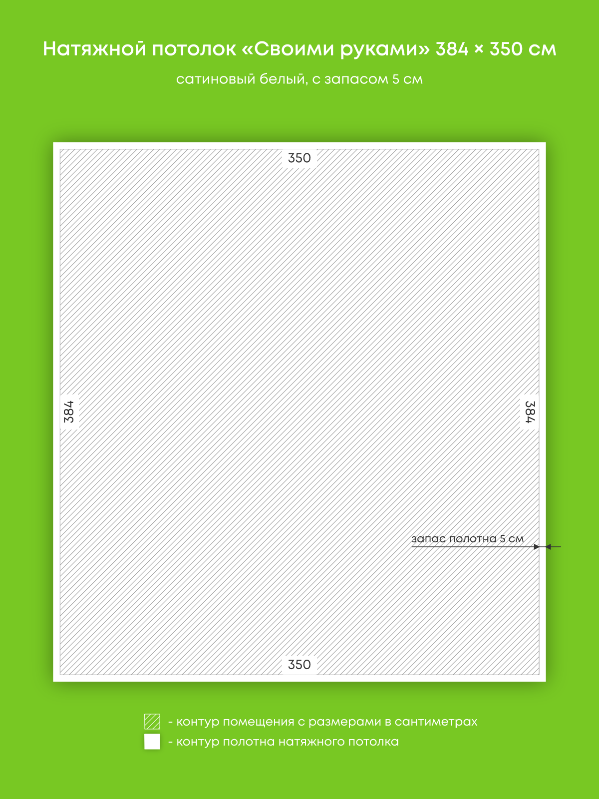 Натяжной потолок белый сатиновый, изготовленный по индивидуальным размерам покупателя, для комнаты площадью 13.4 м2