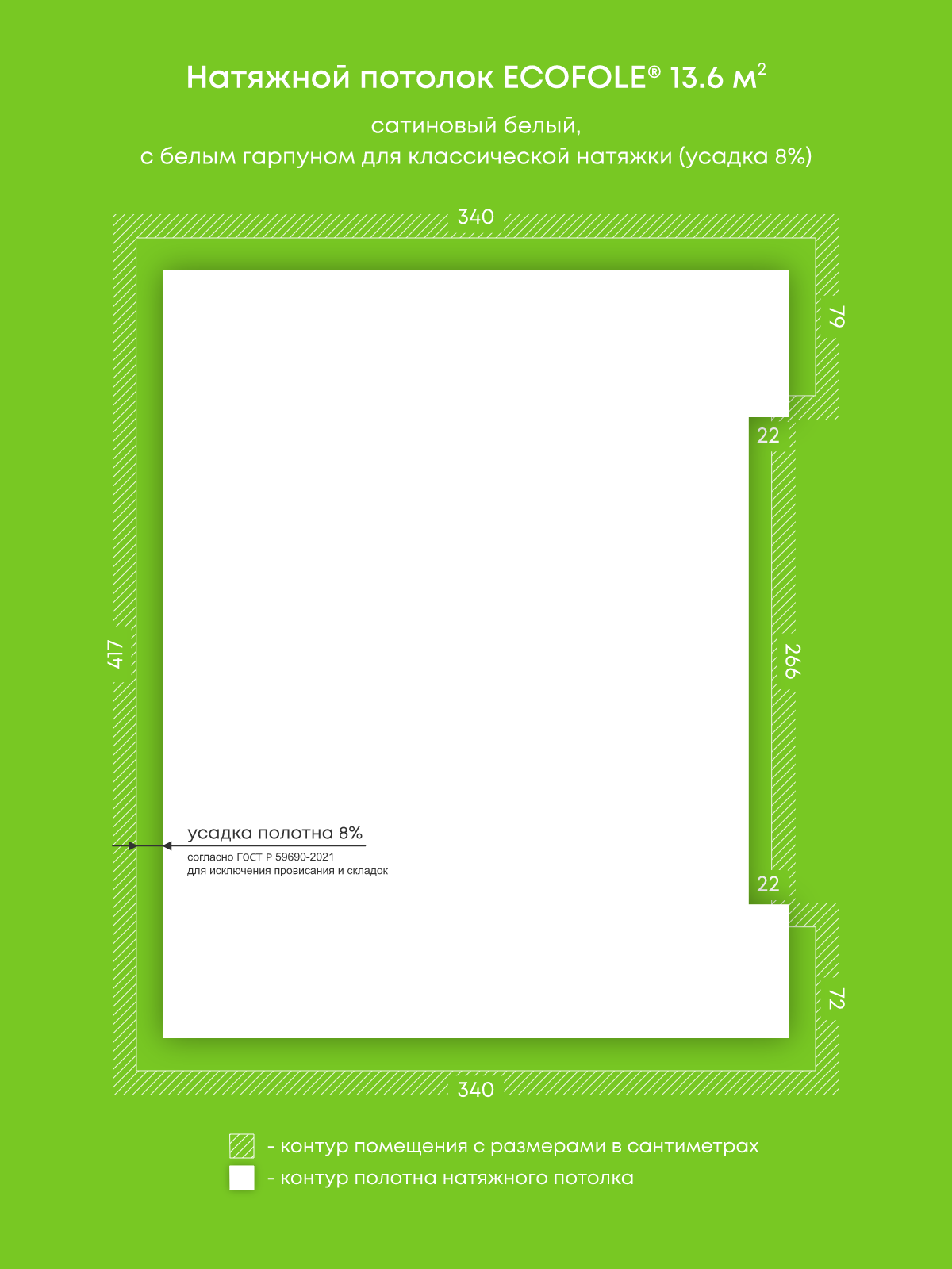 Сатиновый натяжной потолок 13.6 м2