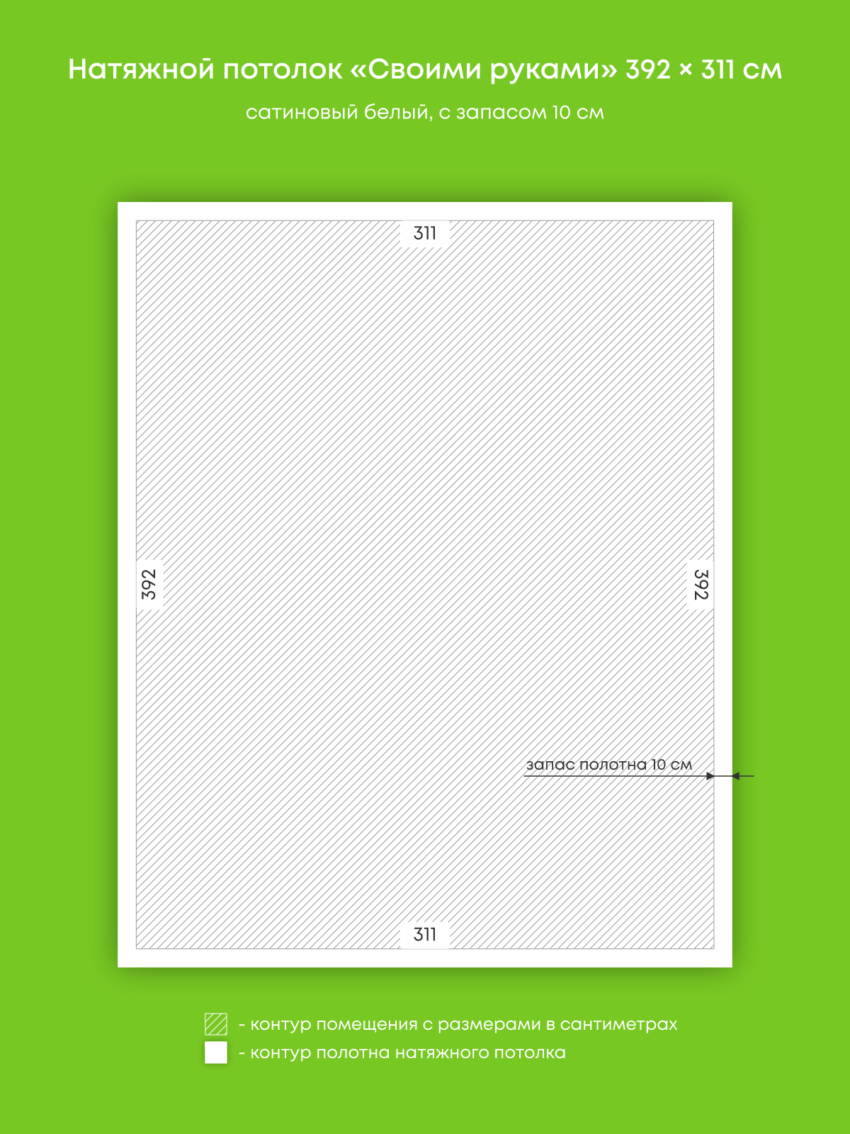 Натяжной потолок белый сатиновый, изготовленный по индивидуальным размерам покупателя, для помещения площадью 13.6 м2