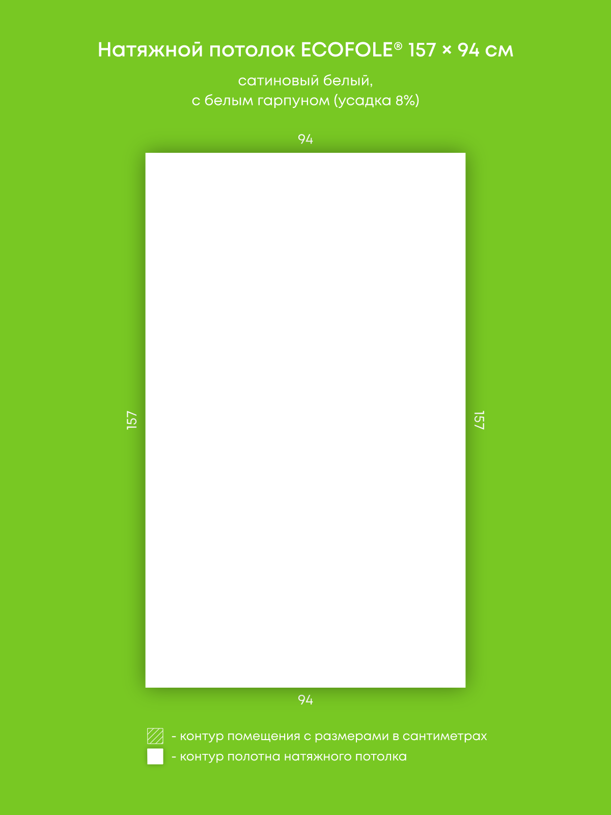 Натяжной потолок белый сатиновый, изготовленный по индивидуальным размерам покупателя, для помещения площадью 1.5 м2
