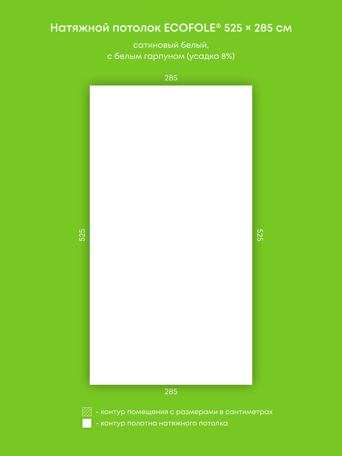Натяжной потолок белый сатиновый, изготовленный по индивидуальным размерам покупателя, для помещения площадью 15 м2