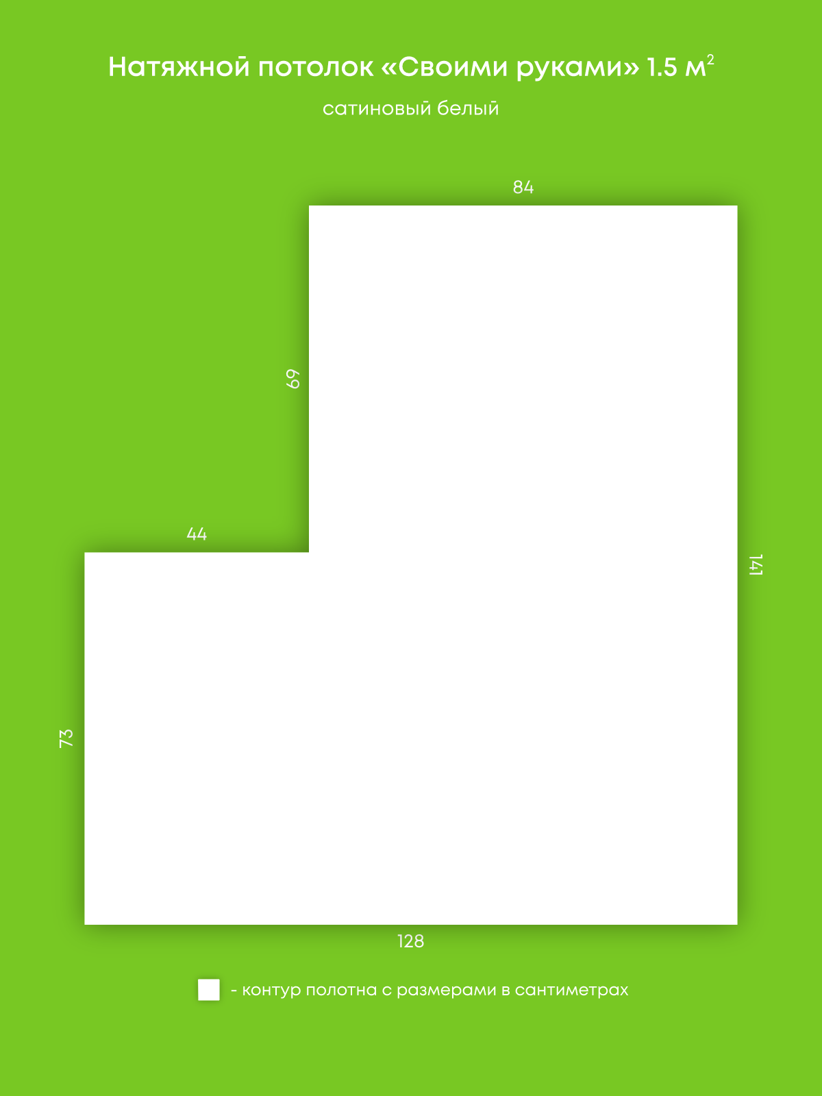 Натяжной потолок белый сатиновый, изготовленный по индивидуальным размерам покупателя, для помещения площадью 1.5 м2