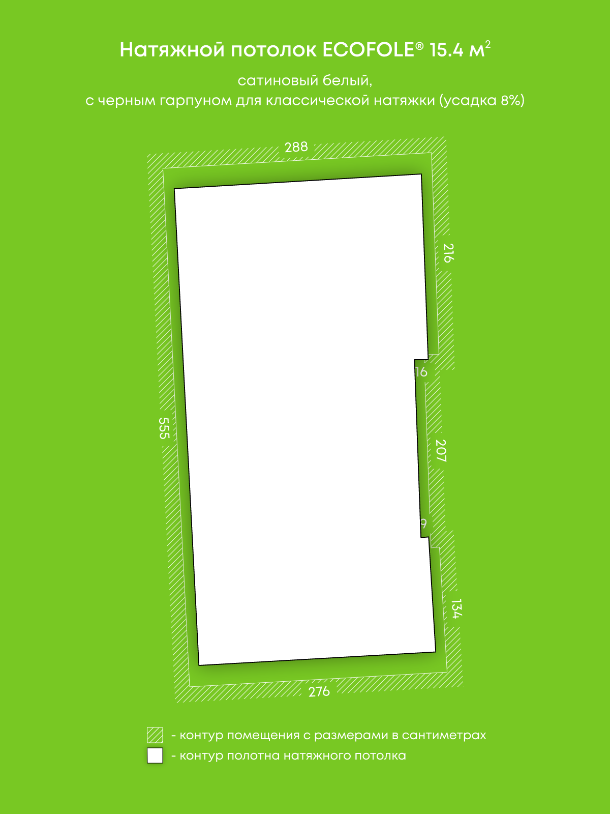 Сатиновый натяжной потолок 15.4 м2