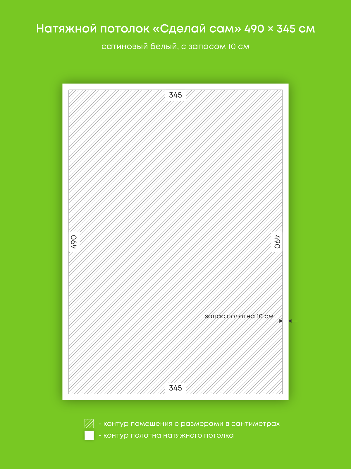 Натяжной потолок белый сатиновый, изготовленный по индивидуальным размерам покупателя, для гостиной площадью 16.9 м2