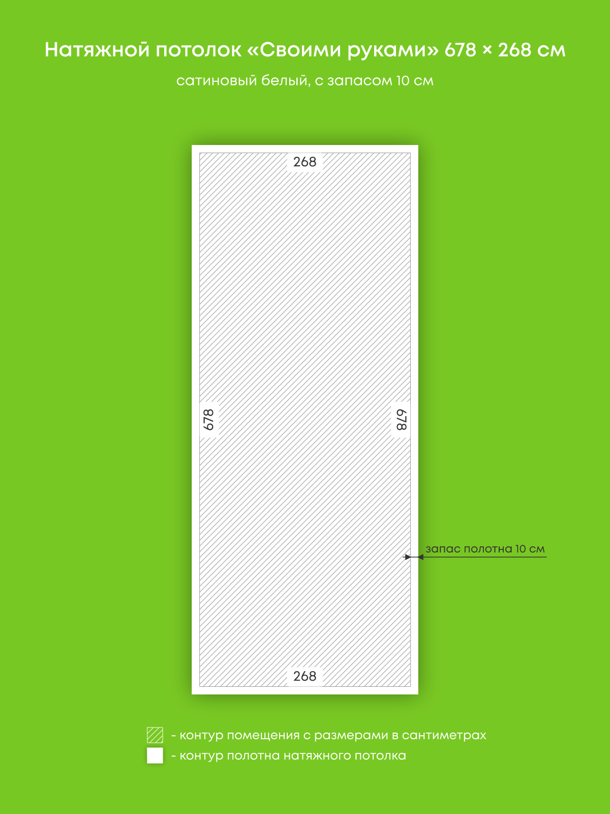 Натяжной потолок белый сатиновый, изготовленный по индивидуальным размерам покупателя, для комнаты площадью 18.2 м2