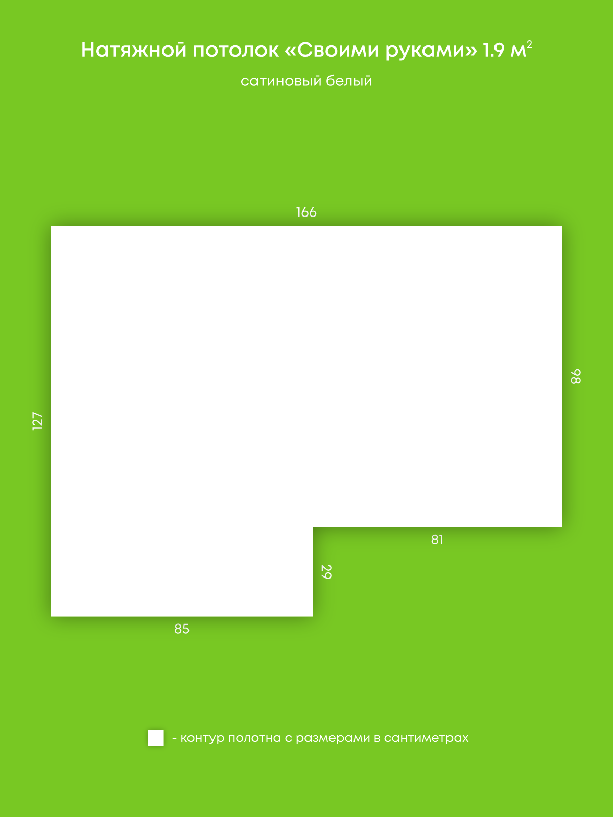 Натяжной потолок белый сатиновый, изготовленный по индивидуальным размерам покупателя, для помещения площадью 1.9 м2