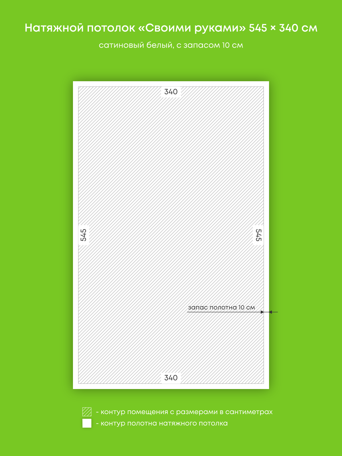 Натяжной потолок белый сатиновый, изготовленный по индивидуальным размерам покупателя, для помещения площадью 20.3 м2