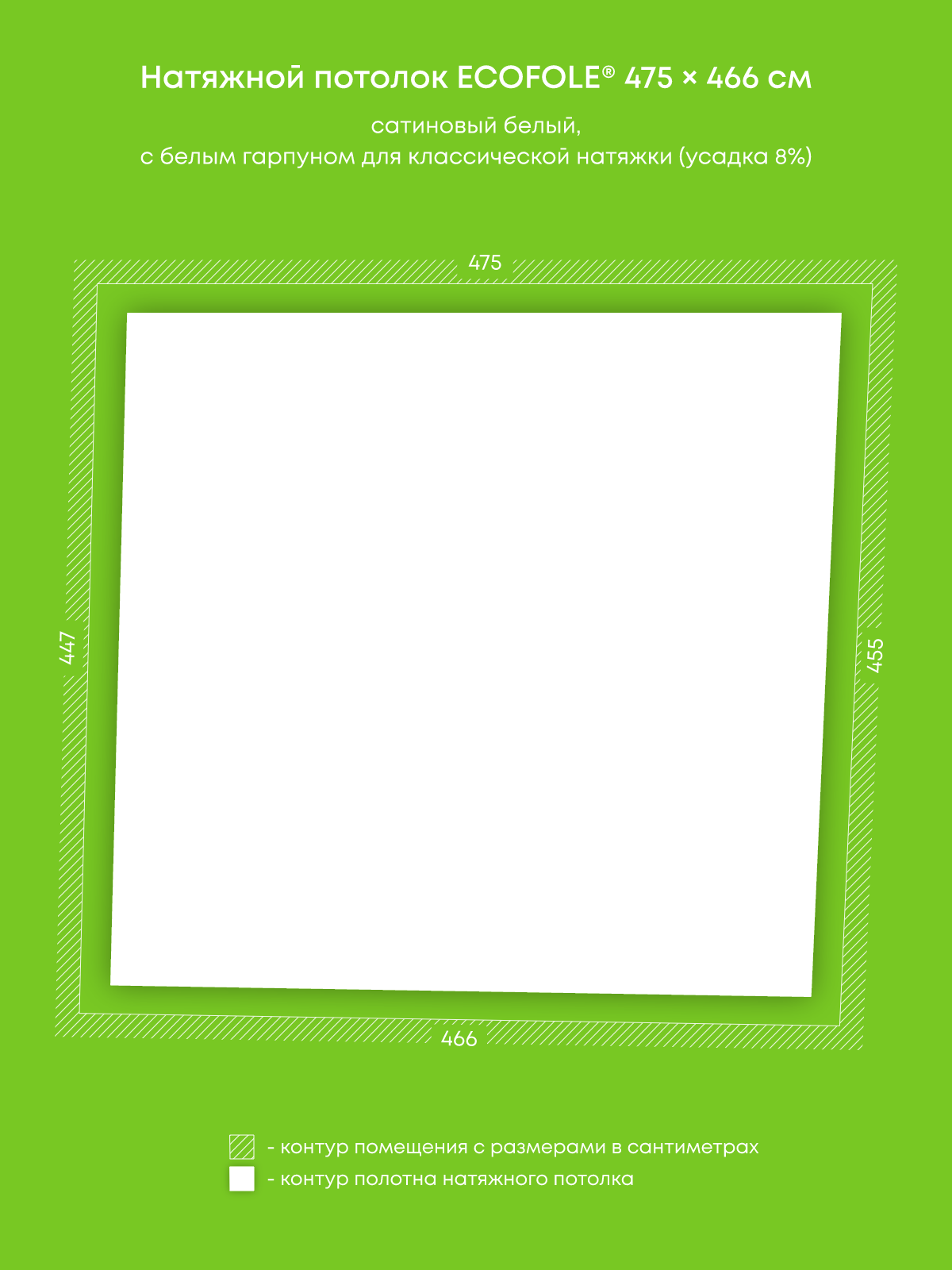 Натяжной потолок белый сатиновый, изготовленный по индивидуальным размерам покупателя, для комнаты площадью 21.2 м2