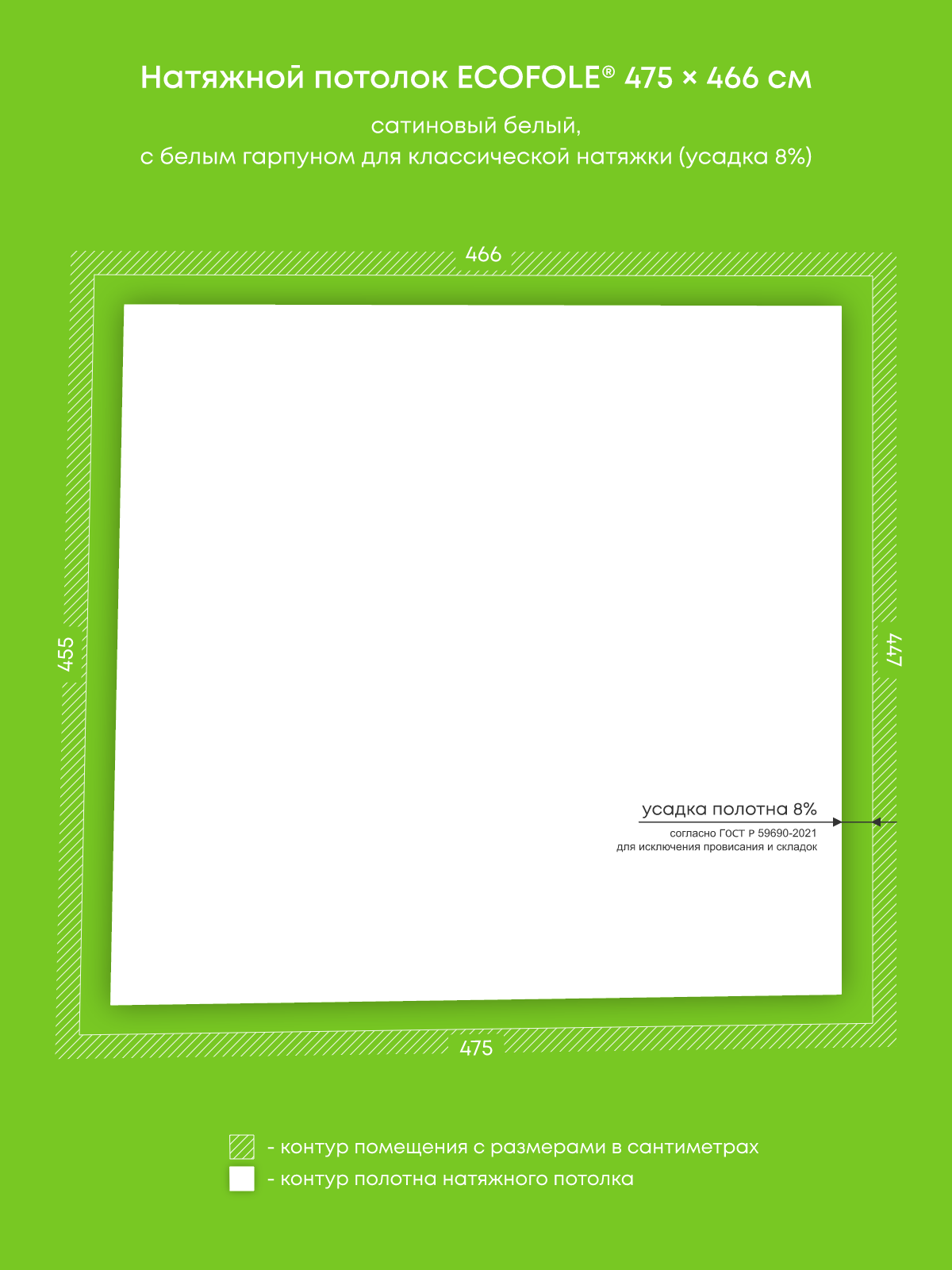 Натяжной потолок белый сатиновый, изготовленный по индивидуальным размерам покупателя, для комнаты площадью 21.2 м2