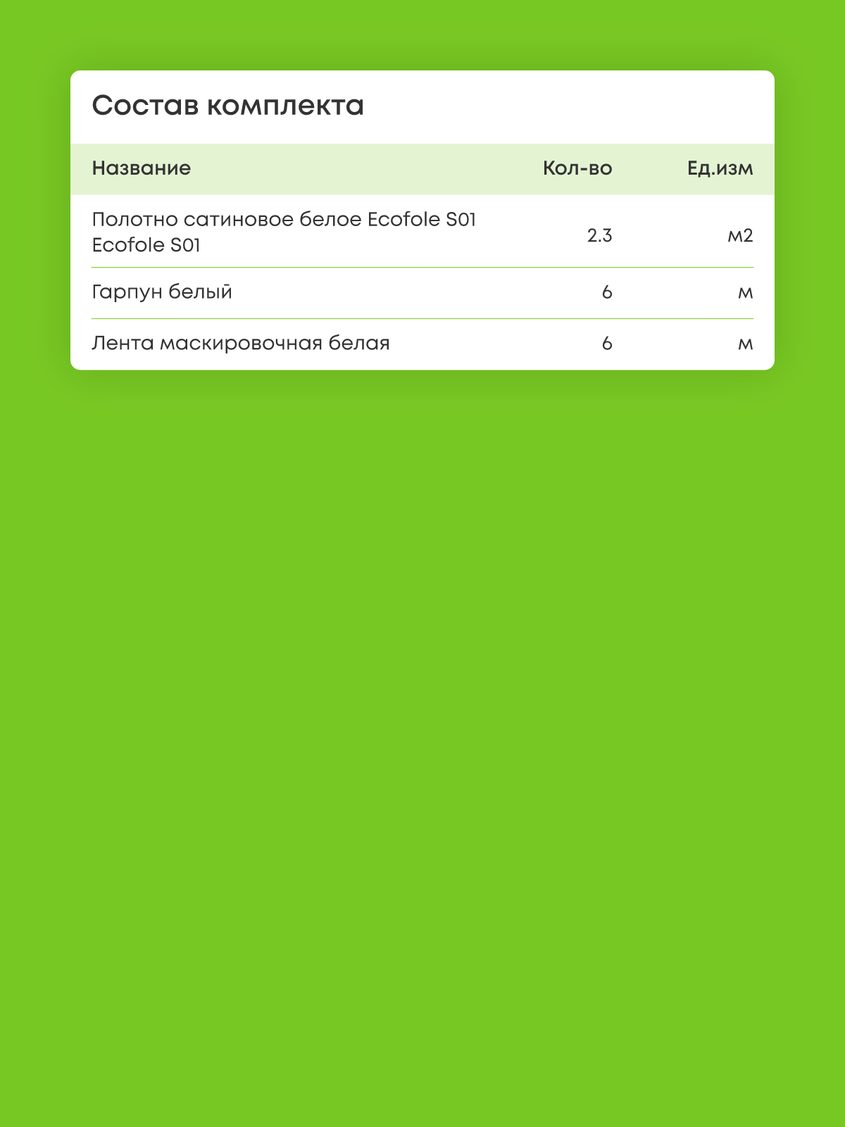Натяжной потолок белый сатиновый, изготовленный по индивидуальным размерам покупателя, для помещения площадью 2.3 м2