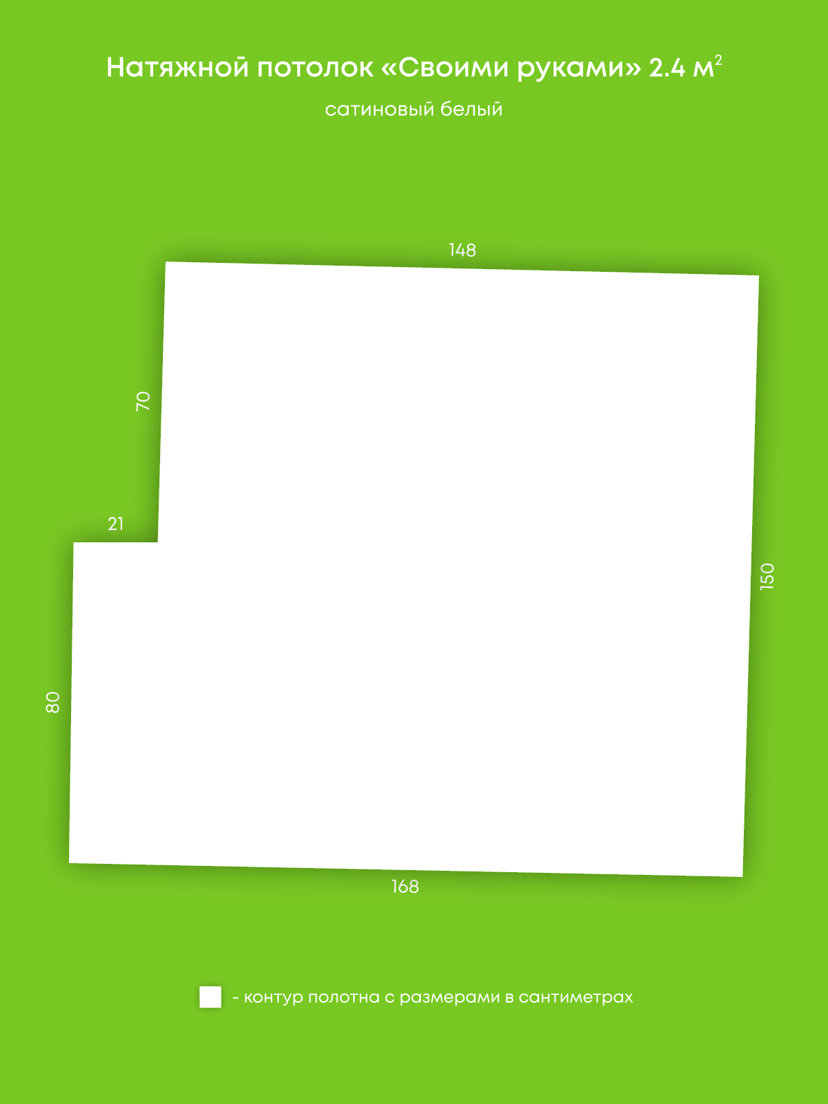 Натяжной потолок белый сатиновый, изготовленный по индивидуальным размерам покупателя, для помещения площадью 2.4 м2