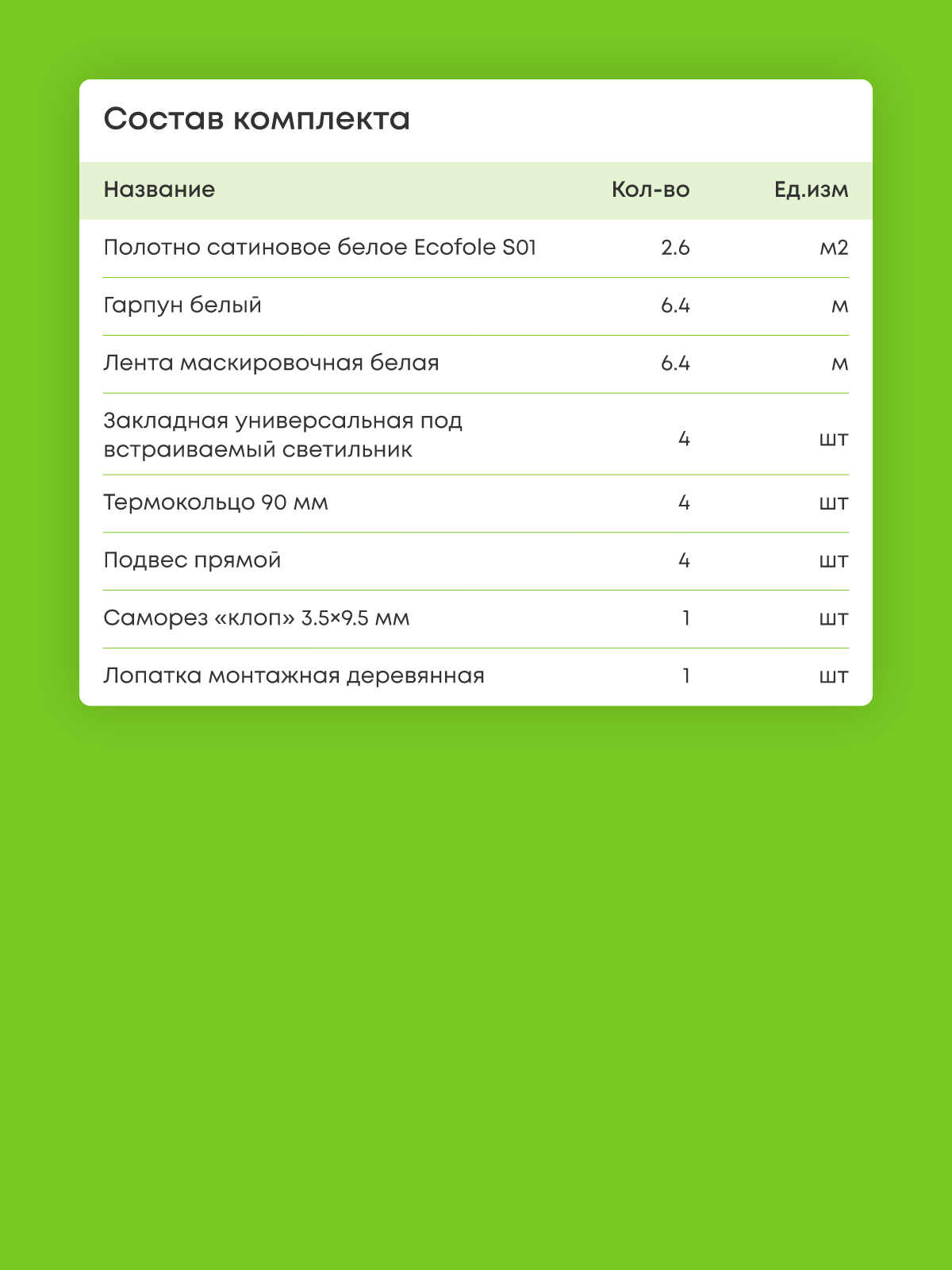 Натяжной потолок белый сатиновый, изготовленный по индивидуальным размерам покупателя, для помещения площадью 2.6 м2