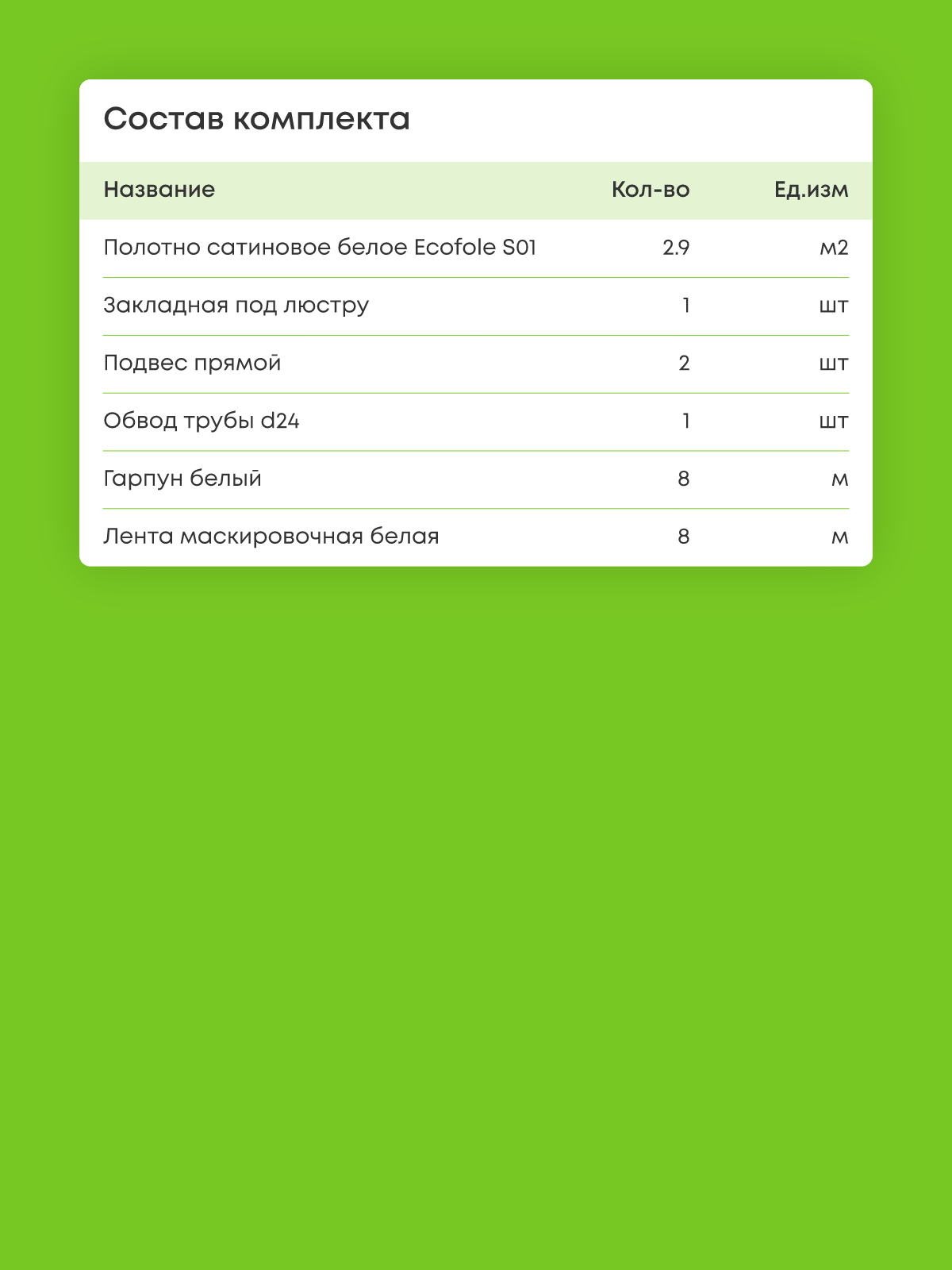 Натяжной потолок белый сатиновый, изготовленный по индивидуальным размерам покупателя, для помещения площадью 2.9 м2