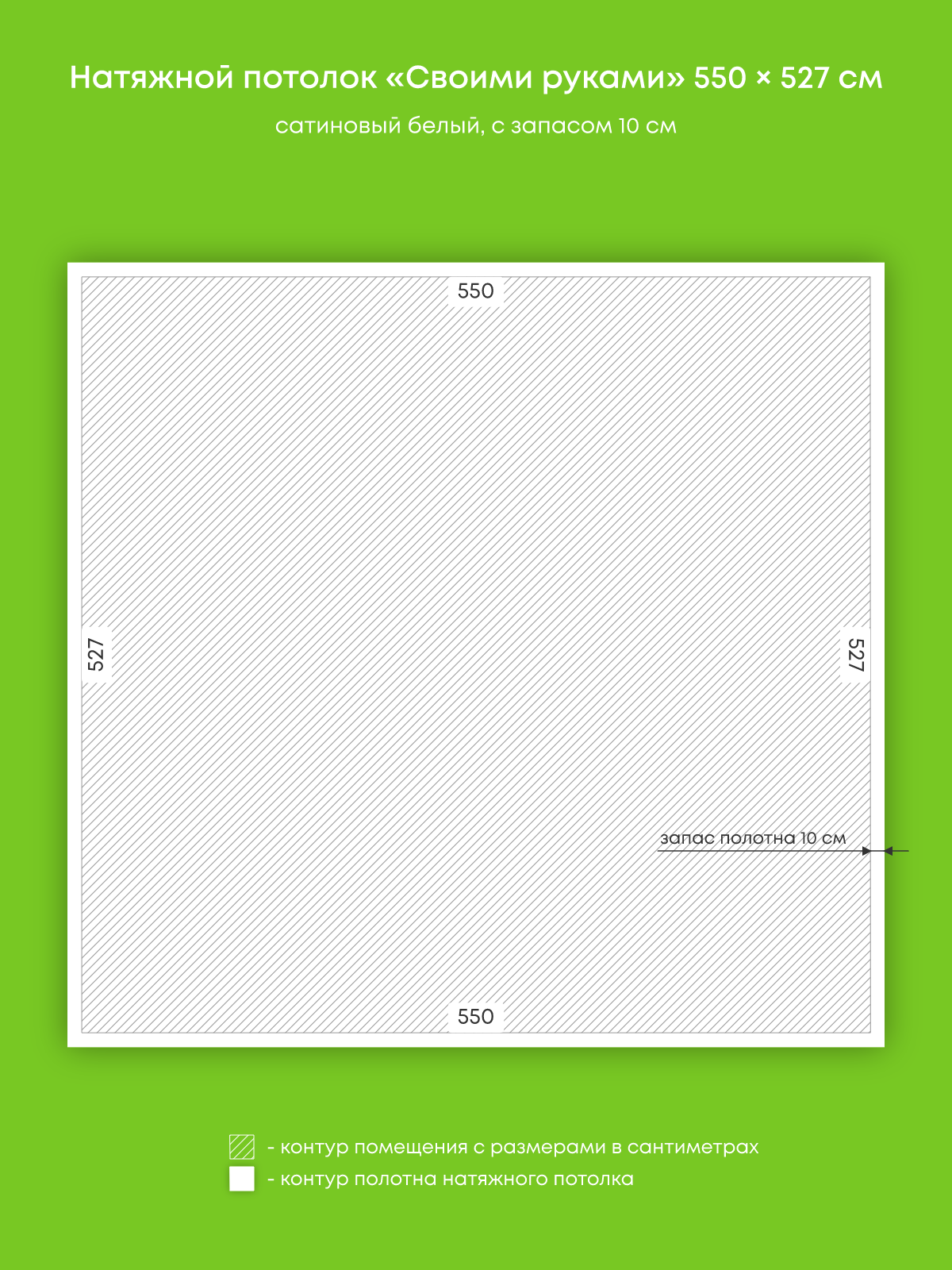 Натяжной потолок белый сатиновый, изготовленный по индивидуальным размерам покупателя, для комнаты площадью 29 м2