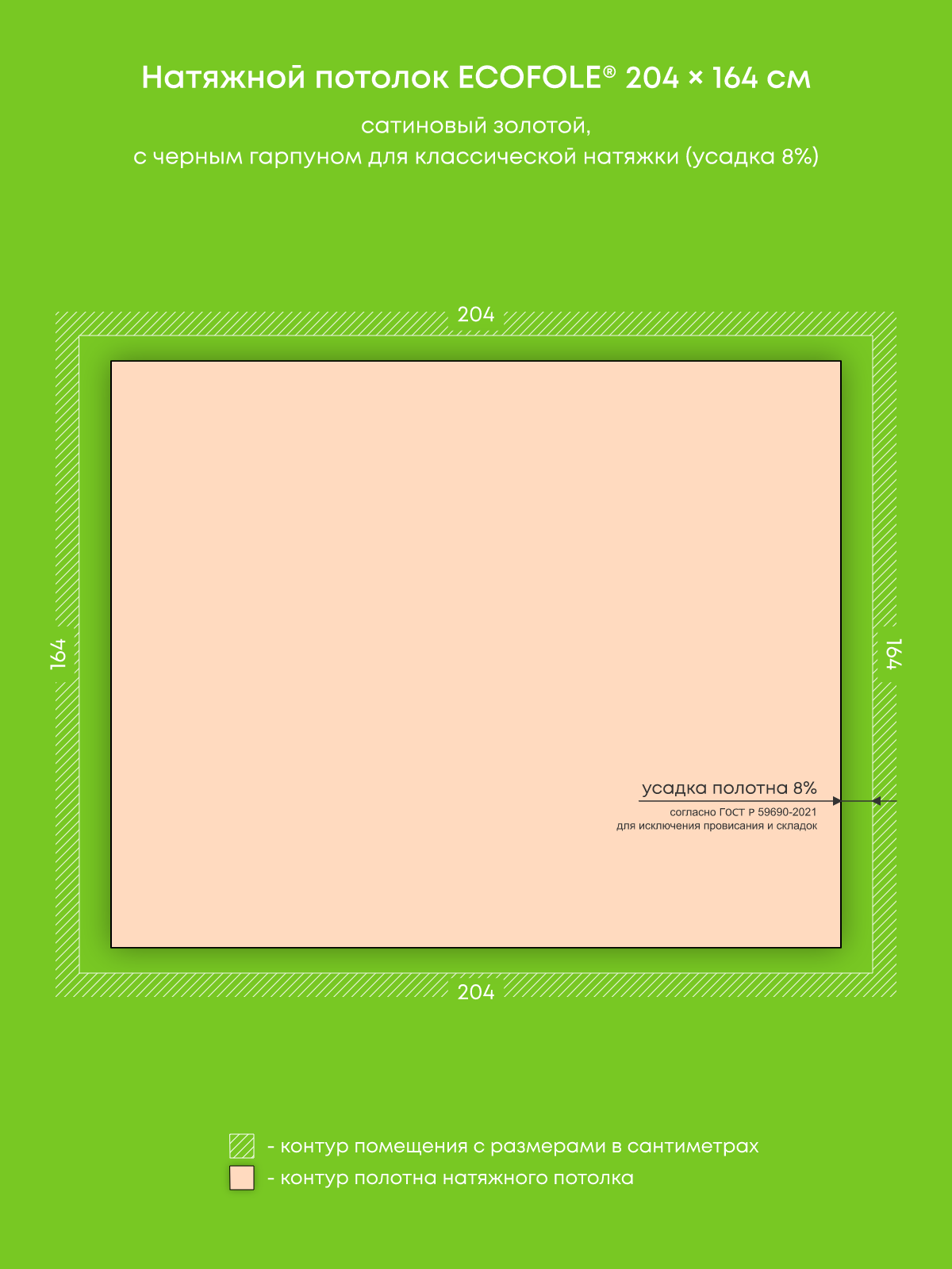 Натяжной потолок золотой сатиновый, изготовленный по индивидуальным размерам покупателя, для комнаты площадью 3.3 м2