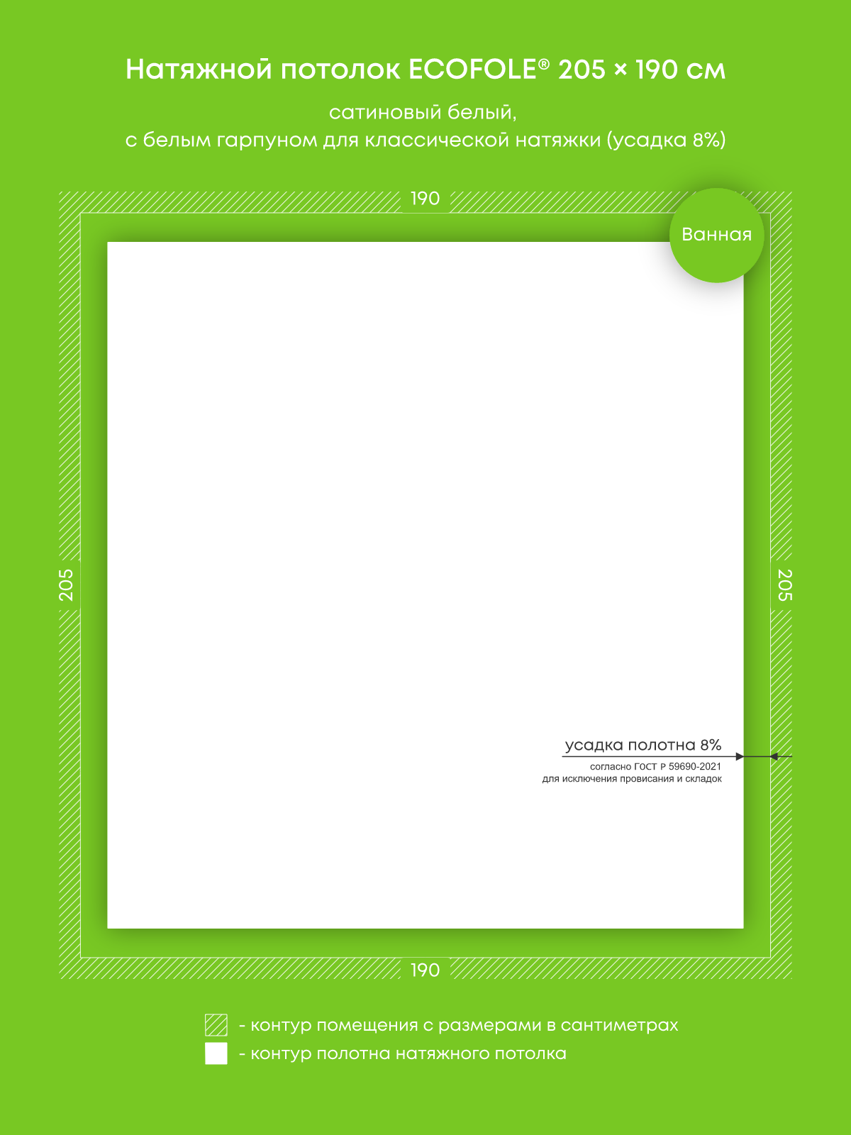Натяжной потолок белый сатиновый, классической натяжки, изготовленный по индивидуальным размерам покупателя, для помещения площадью 3.9 м2