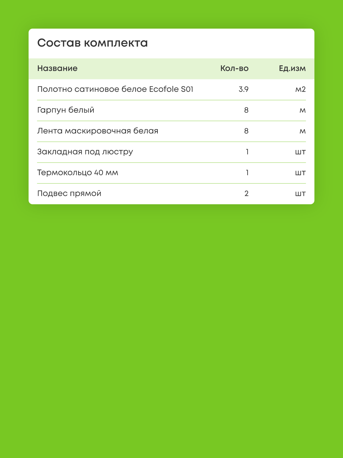 Натяжной потолок белый сатиновый, изготовленный по индивидуальным размерам покупателя, для помещения площадью 3.9 м2