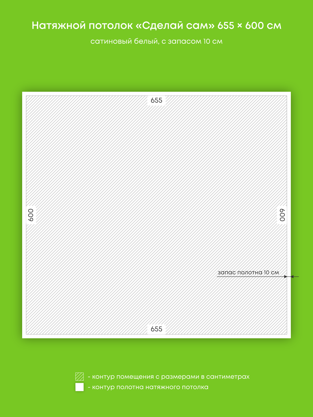 Натяжной потолок белый сатиновый, изготовленный по индивидуальным размерам покупателя, для спальни площадью 39.3 м2