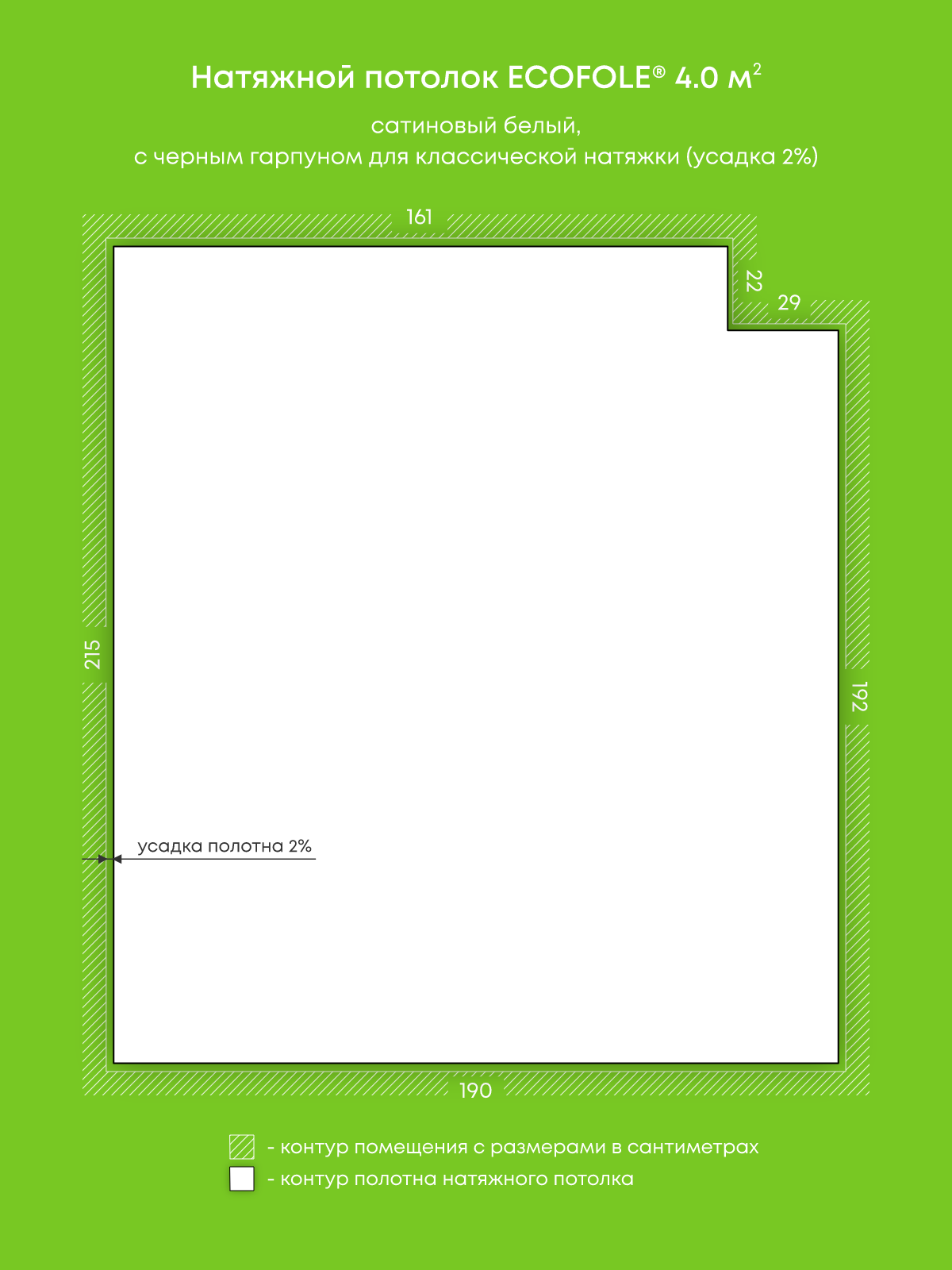 Натяжной потолок белый сатиновый, изготовленный по индивидуальным размерам покупателя, для ванной площадью 4 м2
