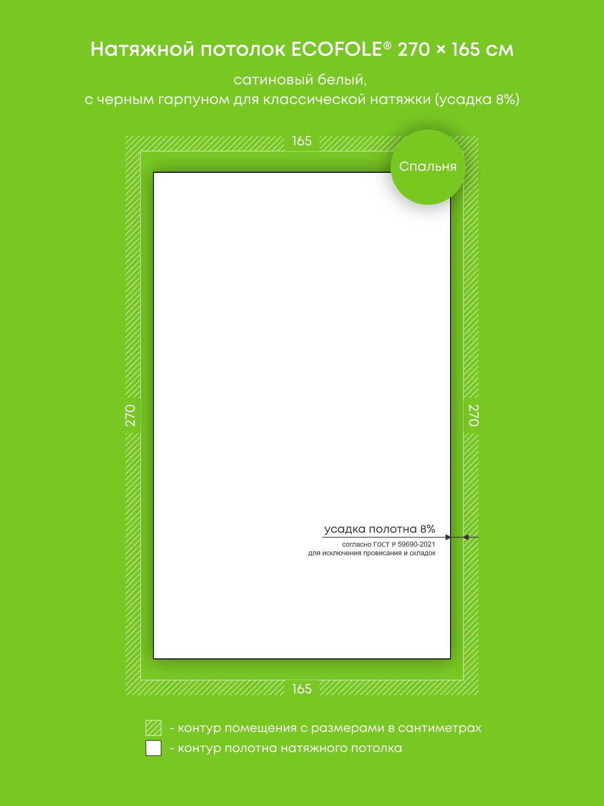 Натяжной потолок белый сатиновый с черным гарпуном, классической натяжки, изготовленный по индивидуальным размерам покупателя, для помещения площадью 4.5 м2