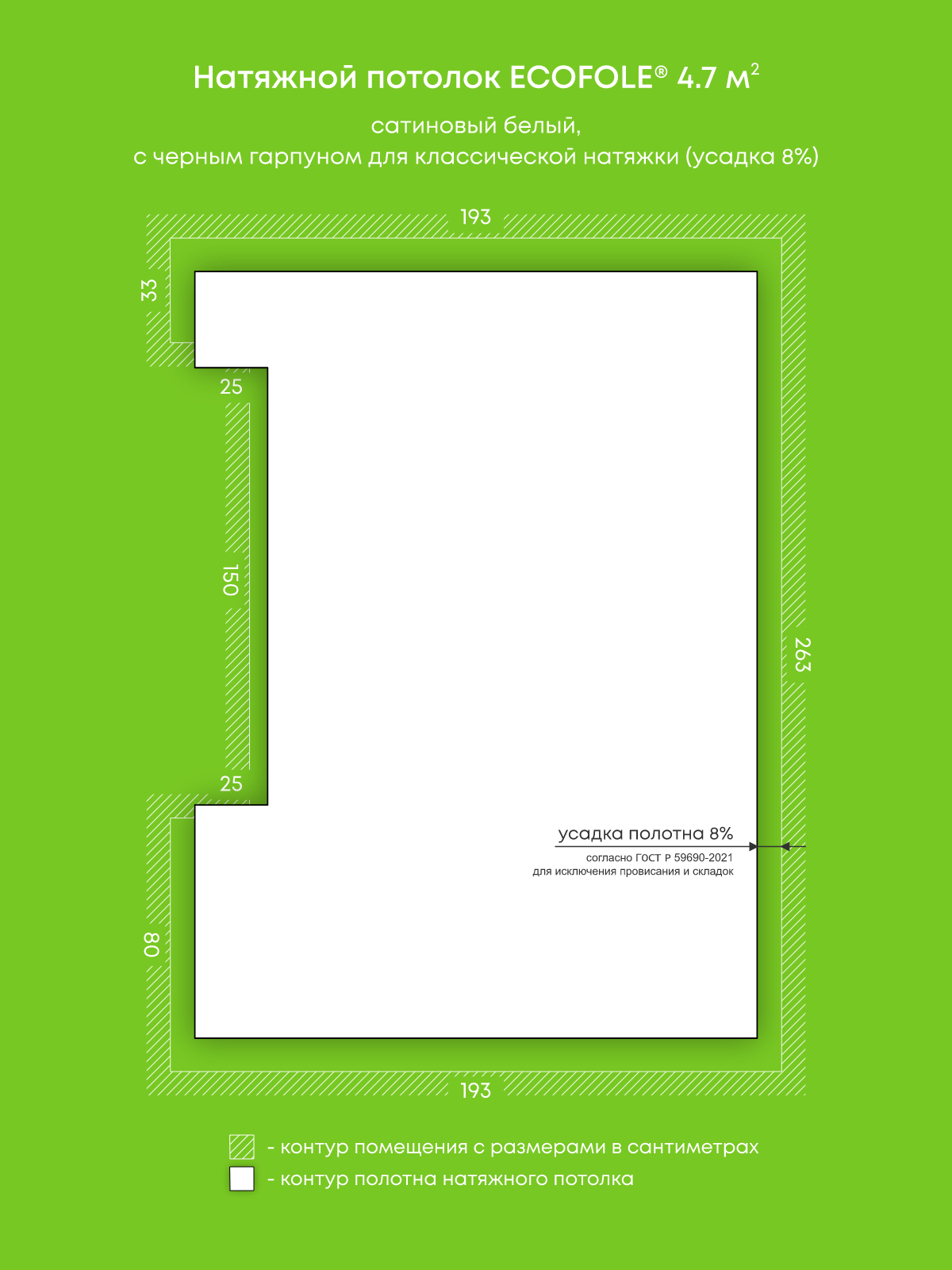 Сатиновый натяжной потолок 4.7 м2
