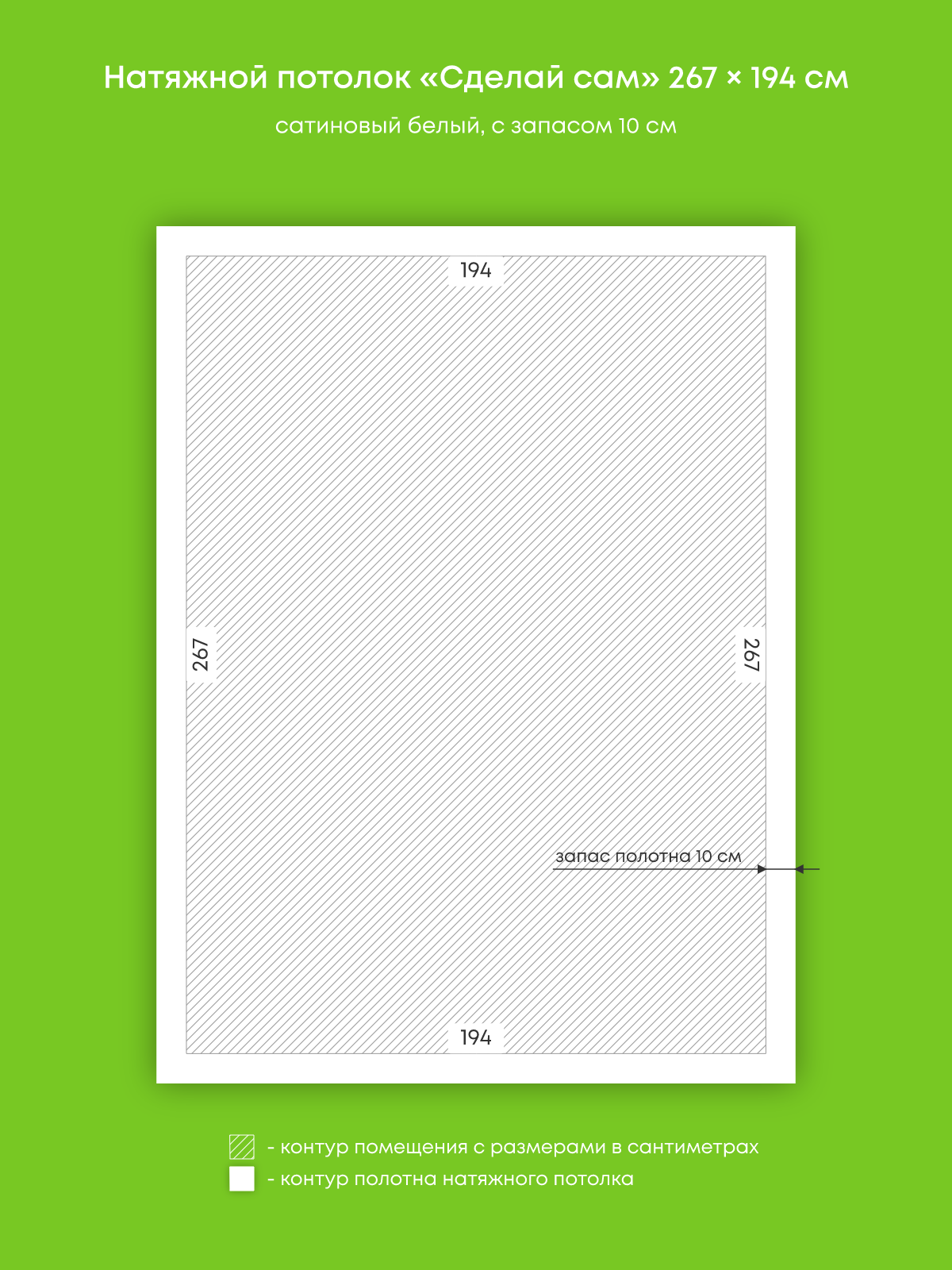 Натяжной потолок белый сатиновый, изготовленный по индивидуальным размерам покупателя, для помещения площадью 5.2 м2