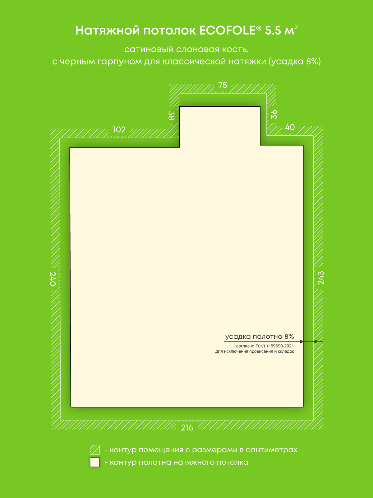 Сатиновый натяжной потолок 5.5 м2