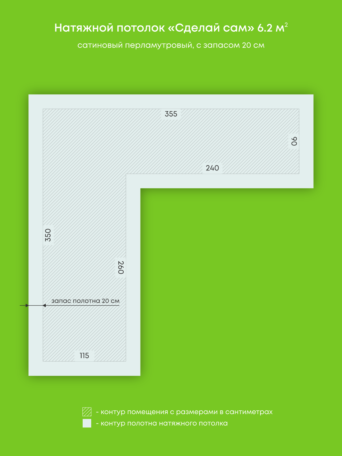 Натяжной потолок перламутровый сатиновый, изготовленный по индивидуальным размерам покупателя, для помещения площадью 6.2 м2