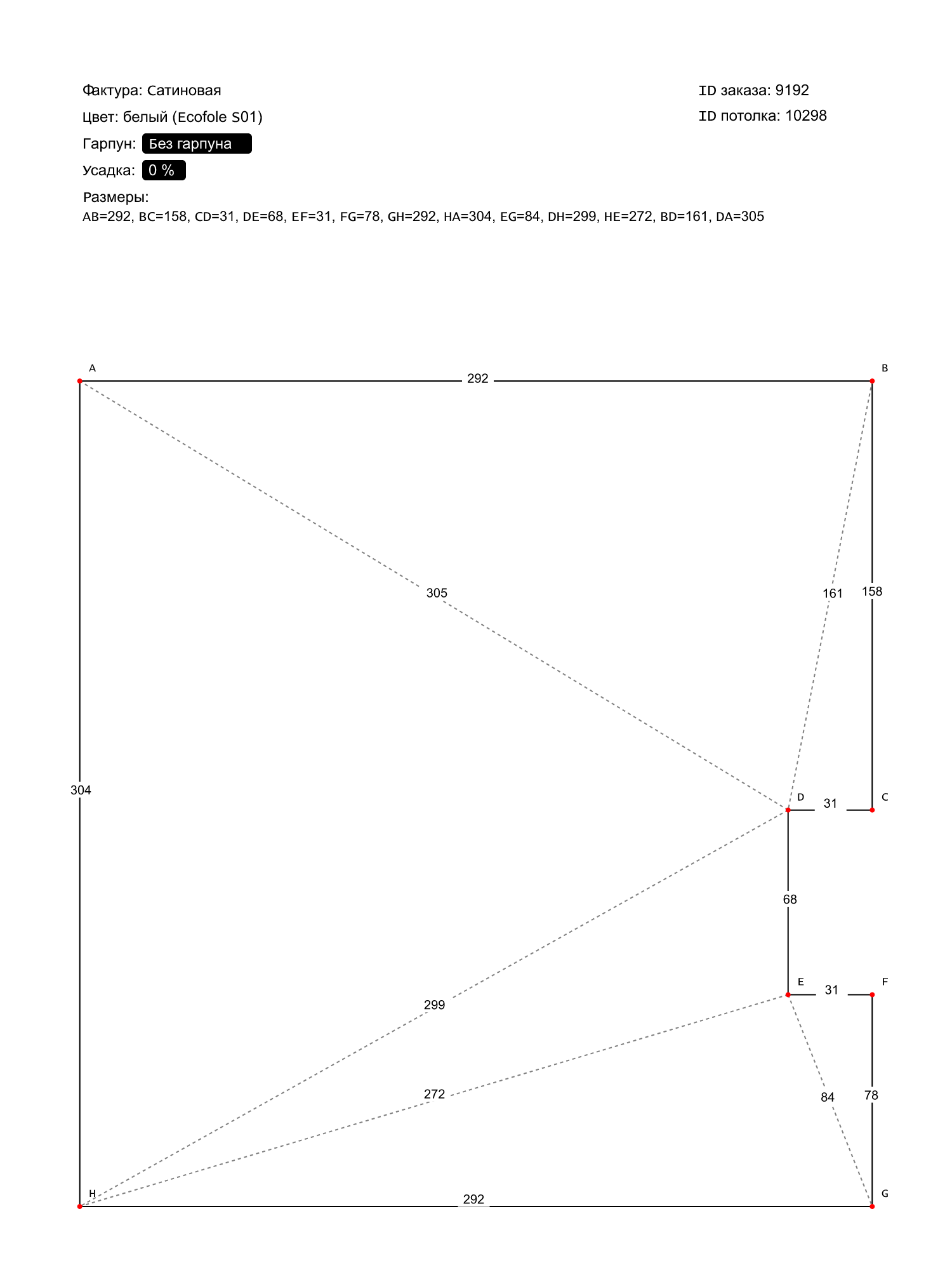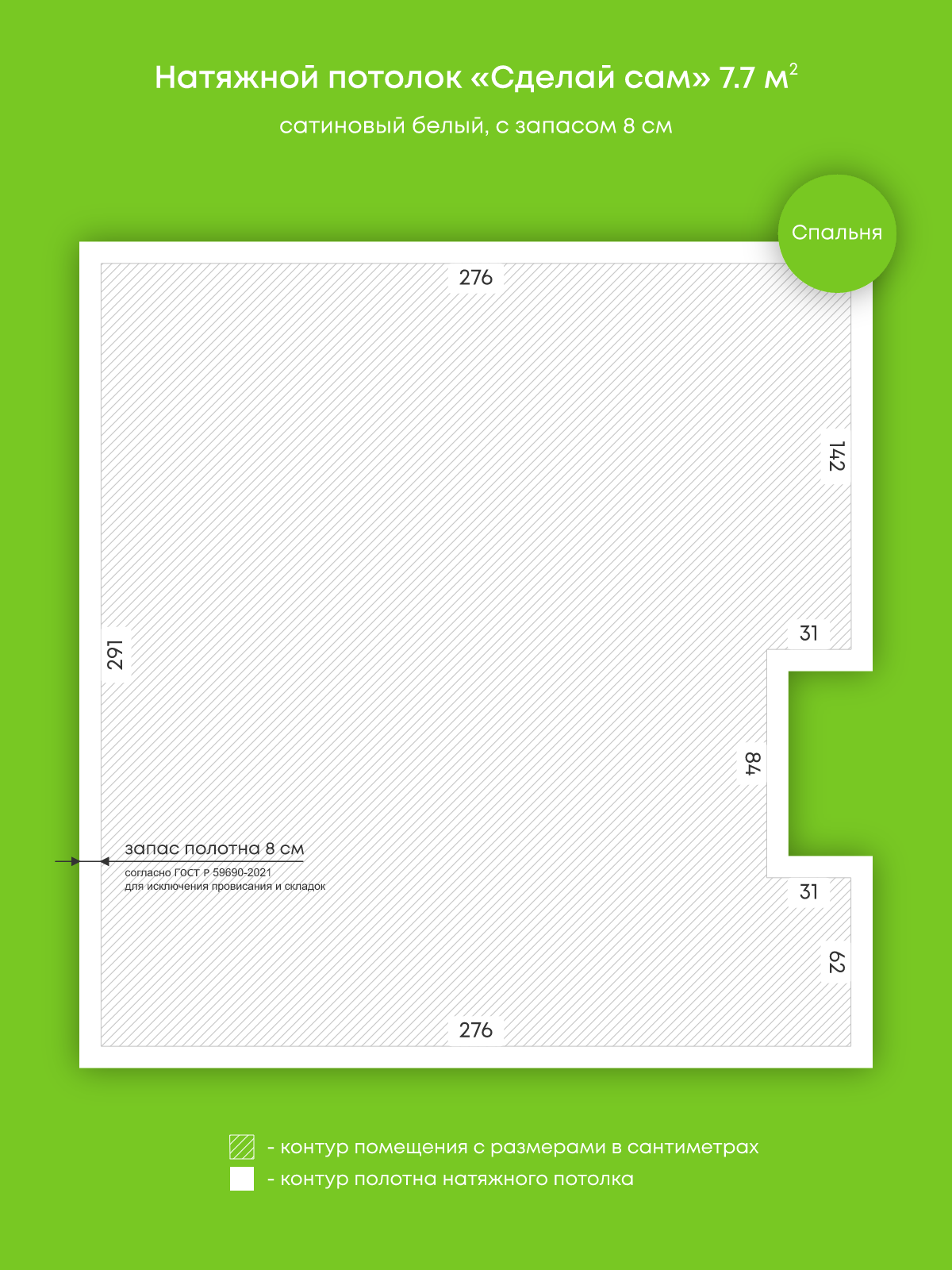 Натяжной потолок белый сатиновый, сделай сам, изготовленный по индивидуальным размерам покупателя, для помещения площадью 7.7 м2