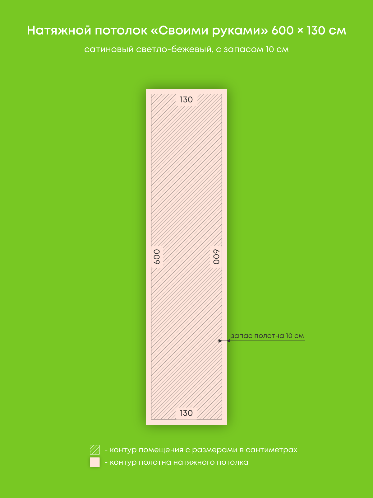 Натяжной потолок светло-бежевый сатиновый, изготовленный по индивидуальным размерам покупателя, для помещения площадью 7.8 м2
