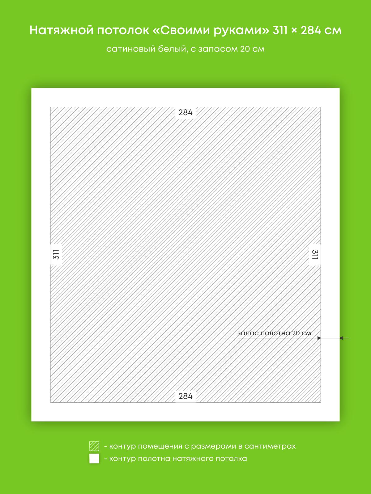 Натяжной потолок белый сатиновый, изготовленный по индивидуальным размерам покупателя, для спальни площадью 8.8 м2