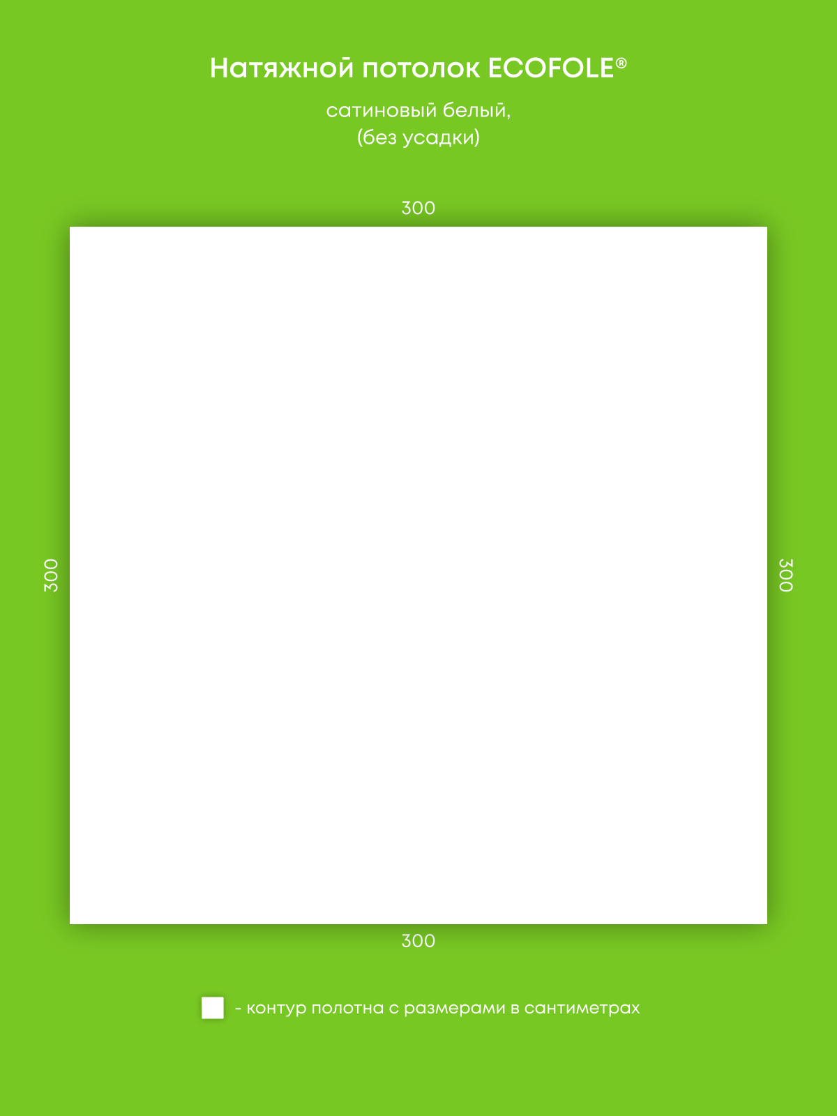Натяжной потолок белый сатиновый, изготовленный по индивидуальным размерам покупателя, для помещения площадью 9 м2
