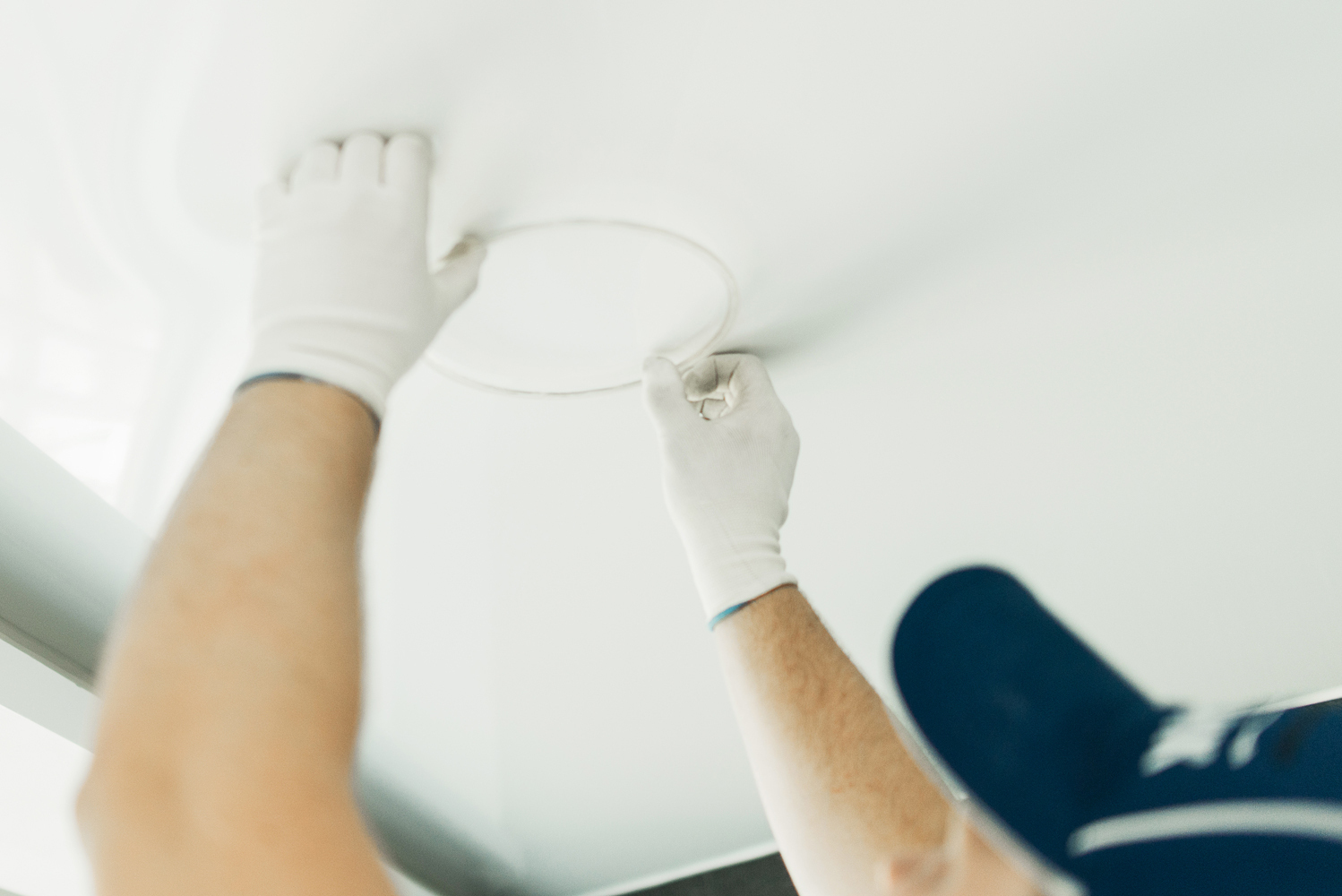 Обработанную поверхность прижимают к потолку без сильного давления, чтобы протекторное кольцо случайно не сдвинулось в сторону. Через несколько секунд отпускают, защита будет держаться надёжно.